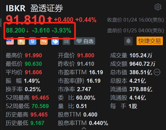 盈透证券盘前跌近4% 连续2日遭股东减仓