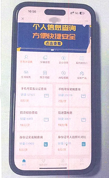 登录网站后,小吴发现用户无需注册也无需认证,只要付费就能使用相应的业务。为了验证真伪,小吴点开个人信息画像查询模块,尝试着输入自己的姓名、身份证号等信息,发现网站在验证上述信息之外还提供了户籍地址、手机号使用时长等其他个人信息,且与自己的真实信息一模一样。
